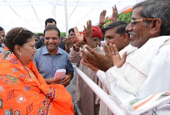 जयपुर। भरतपुर और धौलपुर से बड़ी संख्या में आए जाट समाज के लोगों ने ओबीसी में आरक्षण दिये जाने पर मुख्यमंत्री वसुन्धरा राजे का आभार व्यक्त किया। भरतपुर जिले के नदबई, सिनसिनी, लखनपुर और धौलपुर जिले के उमरारा, बिसनोदा, पुरानी छावनी व करीमपुर आदि गांवों से आए जाट समाज के लोगों ने कहा कि लंबे समय की उनकी मांग आखिर पूरी हुई है। आरक्षण का हक मिलने से जाट समाज का सरकार के प्रति विश्वास और पुख्ता हुआ है। लोगों ने राजे को फूलमालाएं पहनाई और कहा कि राज्य सरकार ने जो ऐतिहासिक कदम उठाया है, उसके लिए हम तहेदिल से मुख्यमंत्री का आभार व्यक्त करते हैं। इस अवसर पर पर्यटन राज्यमंत्री कृष्णेन्द्र कौर दीपा सहित विभिन्न गांवों के सरपंच, उप सरपंच, अन्य जनप्रतिनिधि सहित जाट समाज के लोगों ने श्रीमती राजे के प्रति आभार व्यक्त किया। करौली नगर पालिका चेयरमैन राजाराम गुर्जर के नेतृत्व में आए प्रतिनिधिमण्डल ने भी श्रीमती राजे के करौली दौरे के बाद क्षेत्र में हो रहे विकास कार्यों के लिए उनका आभार जताया।