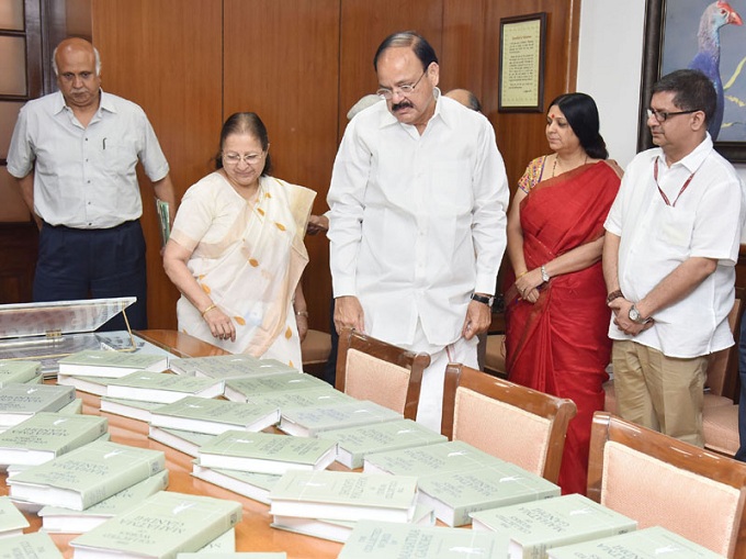 दिल्ली। सूचना और प्रसारण मंत्री वेंकैया नायडू ने संसद पुस्तकालय हेतु संपूर्ण गांधी वांङ्मय के 100 खंड लोकसभा अध्यक्ष सुमित्रा महाजन को सौंपे। इस अवसर पर लोकसभा अध्यक्ष सुमित्रा महाजन ने कहा कि राष्ट्रीय आंदोलन के दौरान गांधीजी के सरल संदेश ने आम लोगों को आंदोलन से जुड़ने के लिए प्रेरित किया और उनमें राष्ट्र की एकता और अखंडता के प्रति सम्मान का भाव जगाया। राष्ट्र सेवा के उनके दर्शन ने वैश्विक समुदाय को भी प्रभावित किया। महात्मा गांधी वाङ्मय के 100 खंड ग्रहण करते हुए महाजन ने कहा कि इन ग्रंथों को संसद में रखा जायेगा ताकि सांसद इस धरोहर साहित्य का अनुशीलन कर सकें। माननीय अध्यक्ष ने इन ग्रंथों के प्रकाशन और सरकार के विकास के एजेंडे पर अमल करने के लिए सूचना और प्रसारण मंत्रालय के प्रयासों की सराहना की।