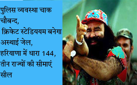 वहीं चंडीगढ़ में क्रिकेट स्टेडियम को अस्थाई जेल बनाने के निर्देश जारी हुए हैं। प्रशासन ने चंडीगढ़ पुलिस को भी शहर में सुरक्षा बंदोबस्त चाकचौबंद करने के निर्देश दिए है। गृह सचिव अनुराग अग्रवाल ने डीजीपी को निर्देश जारी कर हुड़दंगियों व कानून व्यवस्था का उल्लंघन करने वालों के लिए अस्थायी जेल तक बनाने के निर्देश दे दिए है, जो सेक्टर 16 का क्रिकेट स्टेडियम होगा। आदेशों के तहत 25 अगस्त को सेक्टर-16 स्टेडियम के आसपास करीब 250 से 300 पुलिसकर्मियों को तैनात किया जाएगा। इसके अलावा पैरा मिलिट्री फोर्स व चंडीगढ़ पुलिस के क्राइम ब्रांच के वरिष्ठ अधिकारियों की यहां विशेष ड्यूटी लगाई जाएगी। प्रशासन ने ऐलान किया कि डेरा सच्चा सौदा के अनुयायी जो शहर में घुसने की कोशिश करेंगे या जो पहले ही आ चुके हैं, उन्हें स्टेडियम में डिटेन किया जा सकेगा। किसी भी स्थिति से निपटने के लिए अनुयायियों को हिरासत में लिया जा सकता है, इसी को ध्यान में रखते हुए स्टेडियम को जेल के तौर पर प्रयोग किया जाएगा। बता दें कि स्टेडियम 15.32 एकड़ में फैला हुआ है। स्टेडियम की क्षमता 20 हजार दर्शकों की है।