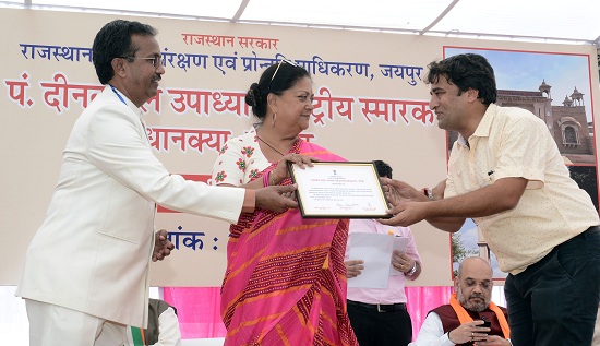 राजस्थान धरोहर संरक्षण एवं प्रोन्नति प्राधिकरण के अध्यक्ष औंकारसिंह लखावत ने बताया कि करीब साढ़े छह करोड़ रूपए की लागत से निर्मित इस राष्ट्रीय स्मारक में पंडित दीनदयाल जी की 15 फीट ऊंची गनमेटल की प्रतिमा भी स्थापित की गई है। सभी अतिथियों ने स्मारक का अवलोकन किया।
