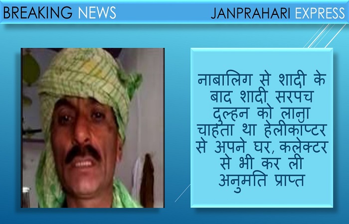 नयी दिल्ली : मुरैना जिले की बहरार जागीर पंचायत के शादीशुदा सरपंच जगन्नाथ मावई (51) को 12 वर्षीय लड़की से कथित रूप से शादी की कोशिश करने के आरोप में पद से बर्खास्त कर दिया गया है। मावई ने 11 दिसम्बर को इस नाबालिग से शादी का दिन तय किया था और शादी होने के बाद दुल्हन को हेलीकॉप्टर से अपने घर लाना चाहता था। इसके लिए उसने एक हेलिकॉप्टर भी बुक कर रखा था और मुरैना जिले के कलेक्टर से दुल्हन को हेलीकॉप्टर से लाने के लिये अनुमति प्राप्त भी कर ली थी। उसने अपने गांव में हेलीपैड भी बना लिया था। लेकिन, इसी बीच एक ग्रामीण ने कलेक्टर से शिकायत की कि सरपंच मावई नाबालिग लड़की से शादी कर रहा है। इसके बाद कलेक्टर ने तुरंत मामले की जांच करवाई और शिकायत सही पाये जाने पर इस शादी को होने से रूकवाया।