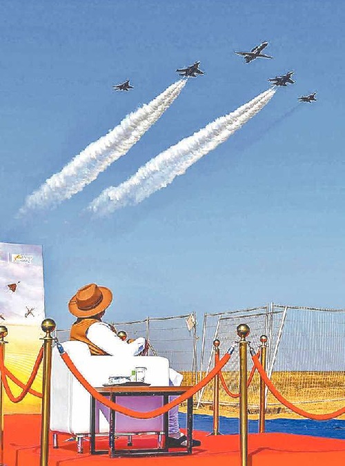 प्रधानमंत्री नरेन्द्र मोदी ने एयरो इंडिया के उद्घाटन पर कहा कि मैं आपको भरोसा दिलाता हूं कि भारत में रक्षा क्षेत्र को मजबूती देने का सिलसिला आगे और भी तेज गति से बढ़ेगा। निश्चित ही देश अनुकूल एवं प्रभावी आर्थिक नीतियों के सहारे विश्व स्तर पर सैन्य साजोसामान के प्रमुख निर्यातकों में से एक बनने की दिशा में आगे बढ़ रहा है, जो लगातार युद्ध की आशंकाओं को देखते हुए सुरक्षा एवं दुनिया की बड़ी सैन्य शक्ति बनने की ओर अग्रसर भारत की उजली एवं संतोषभरी तस्वीर प्रस्तुत कर रहा है। पांच दिवसीय इस कार्यक्रम, ’द रनवे टू ए बिलियन अपॉर्चुनिटीज’ विषय पर एयरोस्पेस और रक्षा क्षमताओं में भारत की वृद्धि का प्रदर्शन भारत की नई ताकत और आकांक्षाओं को दर्शाता रहा है। भारत को दुनिया की सर्वोच्च आर्थिक महाशक्ति बनाने में उन्नत रक्षा सामग्री के निर्माण के लिए और अधिक ऊंचे लक्ष्य रखने होंगे ताकि उसका निर्यात करके अधिकाधिक विदेशी मुद्रा का अर्जन किया जा सके। इसी के साथ भारत की कोशिश यह भी होनी चाहिए कि आयातित युद्धक सामग्री पर निर्भरता कम से कम हो सके। इसकी पुष्टि एयरो शो का उद्घाटन करते हुए प्रधानमंत्री की ओर से दिए गए इस वक्तव्य से भी होती है कि भारत अगले कुछ वर्षों में अपने सैन्य साजो-सामान का निर्यात 1.5 अरब अमेरिकी डालर से बढ़ाकर पांच अरब अमेरिकी डालर करने की तैयारी कर रहा है। इस समय भारत लगभग 75 देशों को अपनी रक्षा सामग्री का निर्यात कर रहा है। उल्लेखनीय यह है कि भारत में निर्मित लड़ाकू विमानों, मिसाइलों और अन्य रक्षा उपकरणों एवं तकनीक की मांग तेजी से बढ़ रही है। यह रक्षा सामग्री के निर्माण में निजी कंपनियों की भागीदारी के चलते ही संभव हो सका है। अच्छा हो कि यह समझा जाए कि अन्य क्षेत्रों की तरह रक्षा क्षेत्र में भी निजी कंपनियों की भागीदारी कितनी आवश्यक है। इससे भारत का व्यापार भी उन्नत होगा एवं रोजगार के अवसर भी बढ़ेंगे।