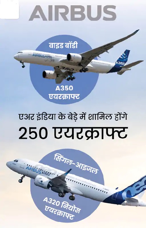नई दिल्ली. एअर इंडिया ने मंगलवार को फ्रेंच कंपनी एयरबस से 250 एयरक्राफ्ट खरीदने की डील साइन की। टाटा ग्रुप के चेयरमैन एन चंद्रशेखरन ने बताया डील में 40 वाइड बॉडी A350 एयरक्राफ्ट और 210 नैरोबॉडी सिंगल-आइजल A320 नियोस एयरक्राफ्ट शामिल हैं। यह दुनिया का अब तक का सबसे बड़ा एविएशन डील है। एअर इंडिया-एयरबस पार्टनरशिप के लॉन्च प्रोग्राम में इसकी घोषणा की गई। इस दौरान प्रधानमंत्री नरेंद्र मोदी और फ्रांस के राष्ट्रपति इमैनुएल मैक्रों और रतन टाटा भी मौजूद थे। प्रधानमंत्री मोदी ने डील को लेकर कहा यह महत्वपूर्ण डील भारत और फ्रांस के बीच गहरे होते संबंधों के साथ-साथ भारत के सिविल एविएशन सेक्टर की सक्सेस को दिखाता है। भारत के ‘मेक इन इंडिया मेक फॉर द वर्ल्ड’ विजन के तहत एयरोस्पेस मैन्युफैक्चरिंग में कई नए अवसर खुल रहे हैं। कार्यक्रम में एविएशन मिनिस्टर ज्योतिरादित्य सिंधिया, वाणिज्य मंत्री पीयूष गोयल, एअर इंडिया के चीफ एग्जीक्यूटिव ऑफिसर कैंपबेल विल्सन और एयरबस के सीईओ गिलाउमे फाउरी भी डील के दौरान मौजूद रहे। इधर, ब्रिटिश पीएम ऋषि सुनक ने इस डील पर खुशी जताई है। उन्होंने कहा इस समझौते से ब्रिटेन को भी फायदा होगा।