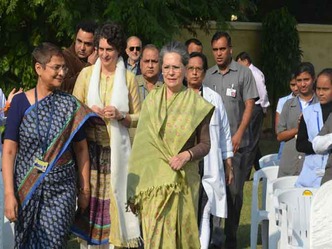 नई दिल्ली। कांग्रेस अध्यक्ष सोनिया गांधी अपनी सास इंदीरा गांधी की जन्मशती के अवसर पर इलाहाबाद पहुंची हुईं हैं। वहां उन्होंने स्कूल ऑफ हेल्थ साइंसेज के कार्यक्रम का शुभारंभ किया। उनके साथ प्रियंका गांधी भी मौजूद हैं। यहां से वे 12 बजे कमला नेहरू ट्रस्ट की मीटिंग में भाग लेंगी और एक बजे के बाद विशेष विमान से इलाहाबाद से दिल्ली रवाना हो जाएंगी। बीते दिनों भी इलाहाबाद में एक सभा के दौरान जब आजान दिया जा रहा था, उस वक्त उन्होंने काफी देर तक अपना भाषण रोक दिया था और सिर पर कपड़ा रख लिया था। जब उनसे राहुल गांधी के नेतृत्व के बारे में पूछा गया था, उन्होंने फिलहाल कुछ भी कहने से इंकार कर दिया था। राहुल गांधी और प्रियंका भी उनके साथ है।