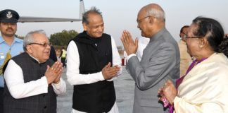 राष्ट्रपति रामनाथ कोविंद की राज्यपाल व मुख्यमंत्री ने की अगवानी