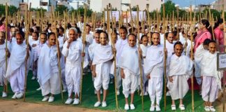 गांधी के वेश में 6500 विद्यार्थियों ने भारत का नक्शा बनाया