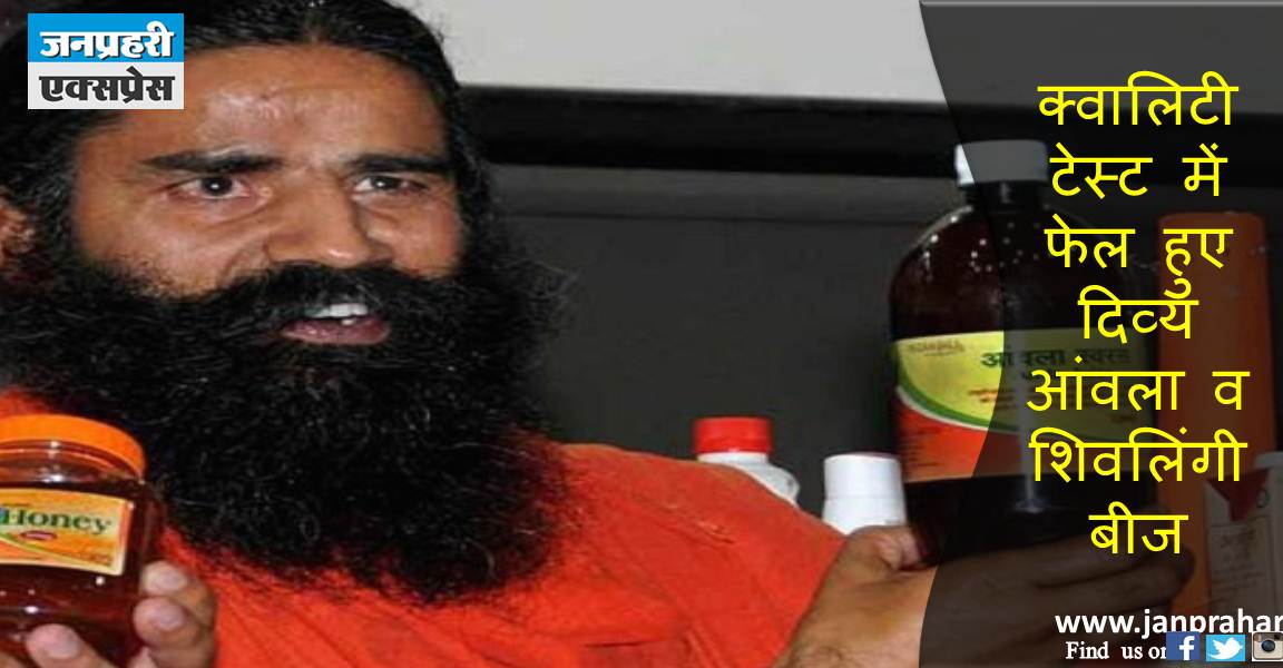 इन उत्पादों में पतंजलि का दिव्य आंवला ज्यूस व शिवलिंगी बीज भी शामिल है। जो अपनी कसौटी पर खरे नहीं उतरे। रिपोर्ट के अनुसार इन उत्पादों में तय मानकों के अनुपात में पीएच वैल्यू बेहद कम है। ऐसे में यह कह सकते हैं कि पतंजलि का हरिद्वार में बैठा ऑफिस ही फैल हो गया है। बता दें गत माह ही पश्चिम बंगाल की जन स्वास्थ्य प्रयोगशाला में पतंजलि के आंवला ज्यूस का गुणवत्ता परीक्षण किया था। परीक्षण की जो रिपोर्ट सामने आई उसके बाद से ही सशस्त्र बलों के कैंटीन स्टोर डिपार्टमेंट ने आंवला ज्यूस को बेचने से इंकार कर रोक लगा दी थी। आरटीआई से मिली सूचना में खुलासा हुआ कि शिवलिंगी बीज में स्वदेशी के स्थान पर विदेशी पदार्थ का प्रतिशत 31.68 प्रतिशत था। हालांकि पतंजलि के प्रबंध निदेशक आचार्य बालकृष्ण ने प्रयोगशाला की इस रिपोर्ट को सिर से खारिज कर दिया और कहा कि शिवलिंगी बीज तो प्राकृतिक है। उसमें मिलावट तो होने का सवाल ही नहीं है। पतंजलि की छवि को खराब करने के लिए यह सब किया जा रहा है।