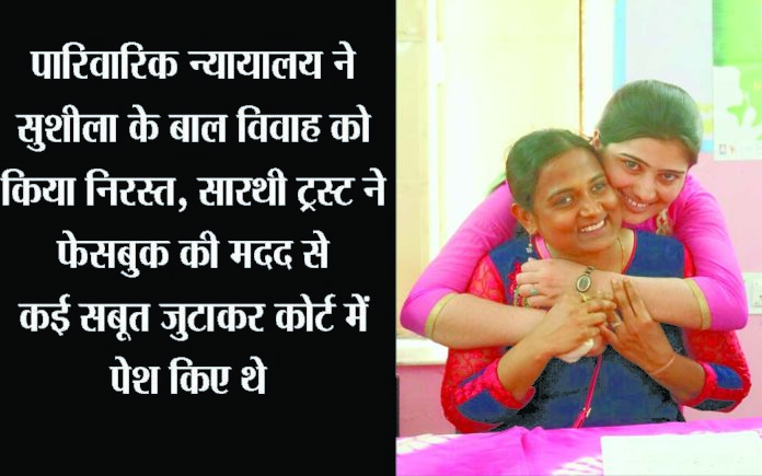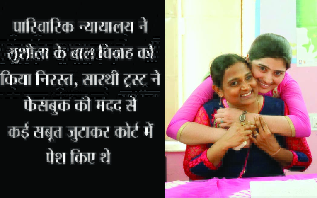 जोधपुर। बाल विवाह के बंधन को नकार कर गौने से पहले आधी रात को घर छोडकर निकलने वाली बाडमेर जिले की बालिका वधु सुशीला ने आखिरकार बाल विवाह से मुक्ति की जंग जीत ली। राजकीय बालिका गृह में संरक्षित सुशीला ने सारथी ट्रस्ट की मदद से पारिवारिक न्यायालय संख्या 1 में बाल विवाह निरस्त के लिए गुहार लगाई थी। जिस पर पारिवारिक न्यायालय संख्या 1 की न्यायाधीश रेखा भार्गव ने सुशीला के बाल विवाह निरस्त का ऐतिहासिक फैसला सुनाया। बालिका वधु के बाल विवाह निरस्त में फेसबुक भी काफी मददगार साबित हुई। सारथी ट्रस्ट की मैनेजिंग ट्रस्टी डॉ.कृति भारती ने बाल विवाह के संबंध में कई सबूत फेसबुक की मदद से जुटाकर न्यायालय में पेश किए थे। बाडमेर जिले के पचपदरा तहसील में भांडियावास गांव निवासी सुशीला का वर्ष 2010 में करीब 12 साल की उम्र में दादी के मौसर पर जोधपुर जिले के बिसलपुर गांव निवासी नरेश के साथ बाल विवाह कर दिया गया था। वहीं गत वर्ष उसकी पढाई छुडवाकर गौने की तैयारियां की जा रही थी। सुशीला ने परिजनों को बाल विवाह को नकार कर ससुराल नहीं भेजने की मिन्नतें की थी।