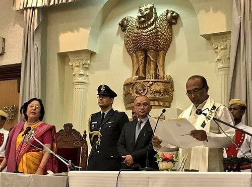 नई दिल्ली। आखिरकार गोवा के बाद मणिपुर में भी भाजपा ने सरकार बनाने में सफलता प्राप्त कर ही ली। बुधवार को मणिपुर की राज्यपाल नजमा हेपतुल्ला ने राजभवन में भाजपा विधायक दल के नेता व पूर्व फुटबॉलर एन. बीरेन सिंह को मुख्यमंत्री पद की शपथ दिलाई। वहीं एनपीपी के वाई.ज्वॉयकुमार ने उप मुख्यमंत्री पद की शपथ ली। उनके साथ आठ मंत्रियों ने भी शपथ ली। इस मौके पर प्रधानमंत्री नरेन्द्र मोदी ने नवनियुक्त सीएम नॉन्गोिमबाम बीरेन सिंह को बधाई देते हुए कहा कि उनके नेतृत्व में मणिपुर विकास के पथ पर अग्रसर होगा। इससे पूर्व 60 सीटों वाली विधानसभा में भाजपा ने 32 विधायकों के साथ सरकार बनाने का दावा पेश किया। भाजपा ने मणिपुर में 21 सीटें जीती थी। भाजपा को नेशनल पीपल्स पार्टी के साथ नगा पीपल्स फ्रंट के 4-4 विधायकों का समर्थन मिला, वहीं एक एलजेपी और दो अन्य विधायकों ने भाजपा में विश्वास जताया। गौरतलब है कि मणिपुर विधानसभा चुनाव में कांग्रेस सबसे बड़ी पार्टी के तौर पर सामने आई। लेकिन, बहुमत के मामले में कुछ सीटें कम पड़ गई। जिससे वह सरकार बनाने के आंकड़े तक नहीं पहुंच पाई। इधर शपथ ग्रहण समारोह में भाजपा के राष्ट्रीय अध्यक्ष अमित शाह भी शामिल होने वाले थे। लेकिन विमान में तकनीकी खराबी के चलते वे नहीं पहुंच पाए। ऐसे में मणिपुर में होने वाले रोड शो में भी वे हिस्सा ले पाए।