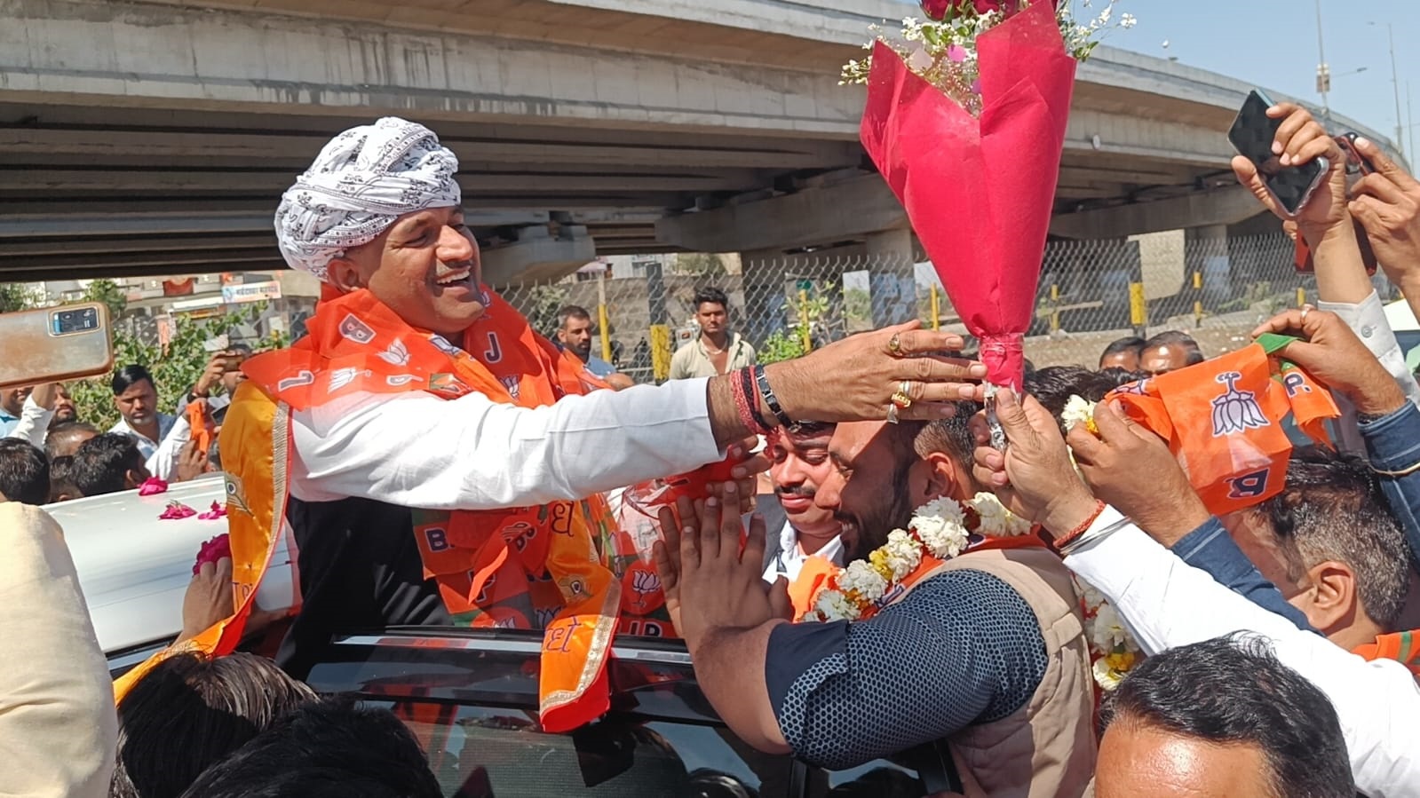 भीलवाड़ा। भारतीय जनता पार्टी के प्रदेश अध्यक्ष एवं सांसद सीपी जोशी, नगरीय विकास एवं स्वायत्त शासन मंत्री झाबर सिंह खर्रा का जयपुर से चित्तौड़ जाते समय सोमवार को भदाली खेड़ा चौराहे पर भाजपा जिलाध्यक्ष प्रशांत मेवाड़ा के नेतृत्व एवं जिला प्रभारी रतनलाल गाडरी, विधायक उदयलाल भडाना, नगर परिषद सभापति राकेश पाठक के सान्निध्य में पदाधिकारियों एवं कार्यकर्ताओं ने जोरदार स्वागत एवं अभिनंदन किया। जिलाध्यक्ष प्रशांत मेवाड़ा ने पगड़ी बांधकर एवं माल्यार्पण द्वारा प्रदेश अध्यक्ष सीपी जोशी का अभिनंदन किया। प्रदेश अध्यक्ष जोशी ने मीडिया से बातचीत करते हुए कहा कि भाजपा सिर्फ चुनाव के समय तैयारी करने वाली पार्टी नही है। यह काम तो कांग्रेस का है जो सिर्फ चुनाव के समय नजर आती है। भाजपा राष्ट्र सेवा को अपना धर्म मानकर अनवरत चलती रहने वाली पार्टी है इसीलिए देश की जनता का विश्वास पार्टी के साथ सदैव बना रहा है। कोरोनाकाल का उदाहरण देते हुए उन्होंने कहा कि प्रदेश में सरकार होते हुए भी कांग्रेस के नेता और मंत्री फाइव स्टार होटलों से नहीं निकले, उस वक्त भाजपा के कार्यकर्ताओं ने सेवा के संकल्प के साथ आम जनता के दुख दर्द को बांटा। आगामी लोकसभा चुनाव में भी प्रधानमंत्री नरेंद्र मोदी के नेतृत्व में राजस्थान में 25 कमल खिलाने की पूरी तैयारी है। उन्होंने कहा कि देशभर में पीएम मोदी के चेहरे पर चुनाव लड़ा जा रहा है और प्रदेश में 15 टिकट वितरण के बाद कोई नाराजगी नहीं है। हम सब एक परिवार के लोग हैं। किसी को यहां मौका मिलता है तो किसी को दूसरी जगह मिलता है। भाजपा पार्टी के प्रत्येक कार्यकर्ता हमेशा सेवा कार्य में लगे रहते हैं, जबकि कांग्रेस पार्टी सिर्फ चुनाव में दिखाई देती है। उन्होंने कहा कि भाजपा सिर्फ चुनाव की ही तैयारी नहीं करती, भाजपा सेवा कार्य भी करती है, जबकि कांग्रेस पार्टी सिर्फ चुनाव में दिखाई देती है। भाजपा का प्रत्येक राजनेता, पदाधिकारी व कार्यकर्ता लगातार प्रत्येक दिन संगठनात्मक, सेवात्मक व रचनात्मक काम में अग्रणी रहता है। इस दौरान लोकसभा संयोजक शक्तिसिंह कालियास, वरिष्ठ नेता रूपलाल जाट, जिला महामंत्री राजकुमार आंचलिया, भगवतीप्रसाद जोशी, जिला प्रवक्ता अंकुर बोरदिया, जिला उपाध्यक्ष बाबूलाल आचार्य, मंजू चेचाणी, अविनाश जीनगर, शंकरलाल जाट, छैलबिहारी जोशी, मनोज बुलानी, युवा मोर्चा जिलाध्यक्ष कुलदीप शर्मा, ओबीसी मोर्चा जिलाध्यक्ष राजेश सेन व बड़ी संख्या में पदाधिकारी एवं कार्यकर्ता उपस्थित रहे। उन्होंने कहा कि लोकसभा चुनाव को लेकर भाजपा की तैयारी पूरी है। लोकसभा के लिए 15 प्रत्याशियों की घोषणा कर दी गई है। हमारा लक्ष्य 25 से 25 सीट पर राजस्थान में कमल खिलाकर पीएम मोदी की दोबारा सरक