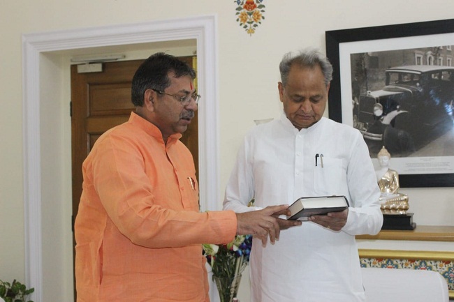 jaipur.राजस्थान के मुख्यमंत्री अशोक गहलोत से दीपावली के अवसर पर बीजेपी प्रेसिडेंट सतीश पूनिया ने शिष्टाचार भेंट की तथा उन्हें श्रध्देय दत्तोपंत ढेगड़ी जी द्वारा लिखित पुस्तक ‘डॉ. अम्बेडकर’ एवं ‘सामाजिक क्रान्ति’ तथा ‘दीनदयाल जी को जानो’ पुस्तके भेंट की ।