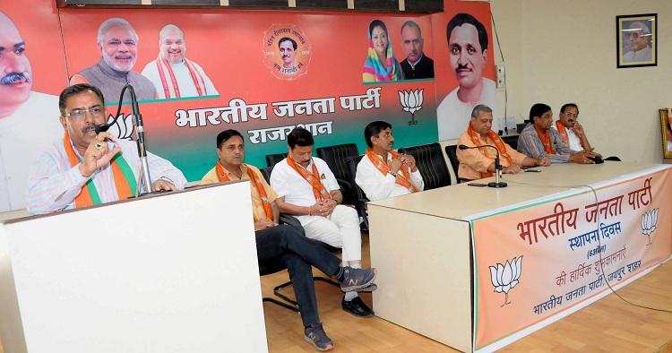 शहर भाजपा अध्यक्ष संजय जैन जनसंघ से लेकर भाजपा तक के सफर मे अपना बलिदान देकर संगठन को ऊचाईया देने वाले कार्यकर्ताओं के प्रति श्रद्धाजंलि प्रकट की और लाखो कार्यकर्ताओं के त्याग और समर्पण के जज्बे को सलाम करते हुए आज के कार्यकर्ताओं को उनके जीवन से सीखते हुए संगठन का कार्य करने का आह्वान किया। संगोष्ठी मे विधायक सुरेन्द्र पारीक, एस.सी. मोर्चा प्रदेशाध्यक्ष ओ.पी. महेन्द्रा, उपमहापौर मनोज भारद्वाज सहित बड़ी संख्या मे पार्टी के कार्यकर्ताओं ने भाग लिया। सायंकाल 4ः30 बजे प्रधानमंत्री नरेन्द्र मोदी का स्थापना दिवस पर देश के कार्यकर्ताओं का मोदी ऐप पर नमो टी.वी. चेनल से सिधा संवाद कार्यक्रम हुआ जिसमें शहर अध्यक्ष संजय जैन, प्रदेश कार्यालय मंत्री सोहनलाल ताम्बी एवं शहर आई.टी. के कार्यकर्ताओं ने व प्रमुख कार्यकर्ताओं ने सामूहिक रूप से देखा। सायंकाल 6ः30 बजे शहर महिला मोर्चा अध्यक्ष कविता मलिक के नेतृत्व मे महिला कार्यकर्ताओं ने पार्टी कार्यालय पर कमल रंगोली बनाकर दीपोत्सव कार्यक्रम आयोजित किया जिसमें बड़ी संख्या मे महिला कार्यकर्ताओं ने भाग लिया।