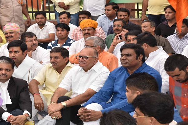 परनामी ने कांग्रेस पर प्रहार करते हुए कहा कि आपातकाल लगाकर कांगे्रस ने लोकतंत्र की हत्या कि थी वही काम आज केरल में वामपंथी कर रहे है। अहिष्णुवादी विचार धारा कांग्रेस व वामपंथीयों की विचार धारा है, सहिष्णुता भाजपा की विचार धारा है।धरने कों विधायक मोहलनलाल गुप्ता, फूलचन्द भिण्डा, पूर्व प्रदेश महामंत्री सतीश पुनिया, संसदीय सचिव कैलाश वर्मा, महापौर अशोक लाहोटी, जिलाध्यक्ष संजय जैन, देहात जिलाध्यक्ष दीनदयाल कुमावत, जिला प्रमुख मूलचन्द मीणा ने भी सम्बोधित किया।धरने में सामाजिक न्याय एवं अधिकारिता मंत्री अरूण चतुवेर्दी, चौमू के विधायक रामलाल शर्मा, शहर भाजपा के महामंत्री राजकुमार रोहिल्ला, नरेश शर्मा, पार्षद, शहर व देहात के पदाधिकारी, जिला परिषद के सदस्य, मण्डल अध्यक्ष, शहर व देहात के कार्यकर्ता उपस्थित रहें। संचालन शहर भाजपा मंत्री लक्ष्मीकान्त पारीक ने किया।