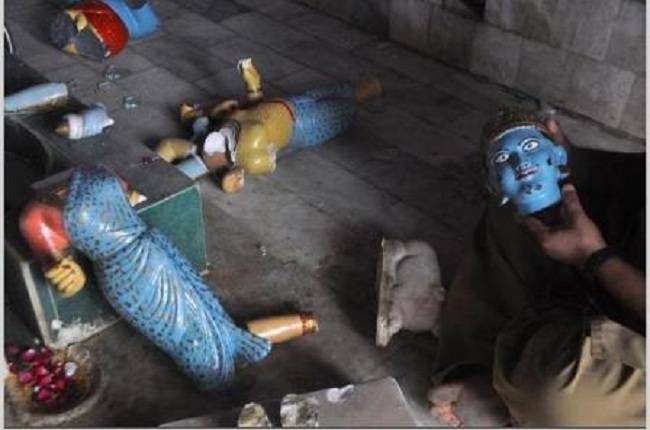 नई दिल्ली। पाकिस्तान के सिंध प्रांत में उपद्रवियों ने एक हिन्दू मंदिर में तोड़-फोड़ की गई और मूर्तियों को तोड़ डाला। ईश-निंदा को लेकर मंदिर में तोडफ़ोड़ की बात कही जा रही हैं, लेकिन ईश-निंदा के साक्ष्य सामने नहीं आए हैं। पाकिस्तान में ईश-निंदा के नाम पर हिन्दू, ईसाई व दूसरे अल्पसंख्यक समाज और उनके धार्मिक स्थलों पर हमले बढ़ते जा रहे हैं। लोगों की हत्याएं की जा रही हैं। ईश निंदा का आरोप लगाते हुए सिंध के थाटा शहर के गारो क्षेत्र में हिन्दू मंदिर में विराजित मूर्तियों को तोड़ दिया। मूर्तियों को मंदिर के बाहर फैंक दिया। पुलिस ने मामला दर्ज कर तीन जनों को गिरफ्तार किया है। क्षेत्र के हिन्दू पार्षद लाल माहेश्वरी ने मीडिया को बताया कि कल मंदिर में धार्मिक अनुष्ठान हुआ था, तब कोई घटना नहीं हुई। सुबह लोग मंदिर में आए तो मूर्तियां गायब थी और मंदिर परिसर में तोडफ़ोड़ की हुई थी। यहां तीन हजार से अधिक हिन्दू परिवार रहते हैं। इस क्षेत्र में पहली बार हिन्दू मंदिर में तोडफ़ोड़ हुई है।