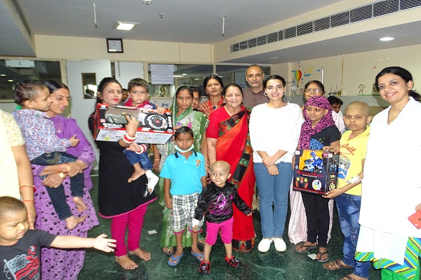 जयपुर। सबसे कम उम्र में ग्रैंड स्लैम खेलने वाली पहली भारतीय खिलाडी लावण्या सिंह खनूजा ने जब कैंसर पीडित बच्चों से मुलाकात करके उन्हें उपहार दिए तो सभी बच्चों के चेहरे पर मुस्कान और आंखों में चमक आ गई। भगवान महावीर कैंसर हॉस्पिटल एंड रिसर्च सेंटर में कैंसर का उपचार करवा रहे बाल रोगियों से मिलने के लिए इंटरनेषनल टेनिस प्लेयर लावण्या सिंह हॉस्पिटल पहुंची। लावण्या ने बाल रोगियों के साथ लंबा समय बिताया और उन्हें उपहार देकर उनकी विषेज को पूरा भी किया।]
