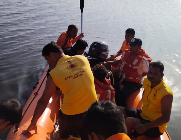 जयपुर. नेवटा बांध में नाव पलटने चार युवक डूब गए। नाव चलाने वाला और एक अन्य तैर कर बाहर आ गए। फिर मदद के लिए चिल्लाने लगे। पुलिस और सिविल डिफेंस की टीम ने डूबे दो दोस्ताें में से एक का शव निकाल लिया। दूसरे की तलाश में जुटी हुई है। पानी के बीच सेल्फी लेने के चक्कर में नाव पलटी। हादसा सेज थाना इलाके में हुआ। सेज थाना एसएचओ सतपाल सिंह ने बताया कि शाम करीब 7 बजे सूचना मिली कि नेवटा बांध में दो युवक डूब गए हैं। युवकों के डूबने की सूचना उसके साथ मौजूद नाविक और उसके साथी ने दी थी। पुलिस ने मौके पर सिविल डिफेंस टीम को बुलाया। डूबने वाले दोनों युवक दोस्त है और घूमने के लिए नेवटा बांध आए थे। नेवटा बांध में नाव देखकर उसमें बैठ गए। नाव जब पानी के बीच पहुंची ताे एक युवक सेल्फी लेने लग गया। ऐसे में नाव का संतुलन बिगड़ गया और अनियंत्रित होकर वह पलट गई। चिल्लाते हुए नाविक और लोकल युवक तैरते हुए बाहर निकल आए, जबकि साथ में मौजूद दोनों दोस्त तैरना नहीं जानने के कारण डूब गए। चिल्लाते हुए बांध से बाहर निकले नाविक और उसके साथी ने डूबे दो युवकों के बारे में बताया। पुलिस ने सिविल डिफेंस टीम की मदद से बांध में रेस्क्यू ऑपरेशन शुरू किया। सिविल डिफेंस ने अंधेरे होने के कारण रेस्क्यू ऑपरेशन बंद कर दिया। रविवार सुबह दोबारा रेस्क्यू ऑपरेशन शुरू किया गया है। दोपहर 12 बजे एक युवक का शव डैम से बाहर निकाल लिया गया। मरने वाला सुरेश गुर्जर (26) नेवटा का रहने वाला है। उसके दोस्त की तलाश की जा रही है। जांच में सामने आया कि नाविक ने मछली पकड़ने के लिए पानी में नाव उतारी थी। उसके साथ एक युवक भी मौजूद था। बता दें इस डैम में बोटिंग नहीं होती है। अवैध रूप से नाव उतारी गई थी। नेवटा बांध टूरिस्ट स्पॉट नहीं है। बांध पर लोग घूमने चले जाते हैं। डैम करीब 6 बीघा में बना हुआ है, जो करीब 25 फीट गहरा है। इसमें दलदल भी है। सिविल डिफेंस के अनुदेशक महेन्द्र कुमार सेवदा ने बताया कि रविवार सुबह 6 बजे से दोबारा रेस्क्यू ऑपरेशन किया जा रहा है। एक युवक का शव बाहर निकाल लिया है। दूसरे की तलाश की जा रही है। स्थानीय लोगों से जानकारी मिली है कि नाव में बैठकर दोनों दोस्त बांध के बीच में गए थे। जहां सेल्फी लेते समय नाव पलट गई।