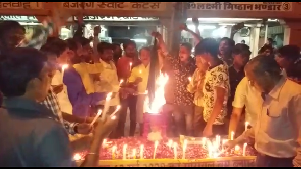 जयपुर। जयपुर शहर में 13 मई को हुए सीरियल बम ब्लास्ट की बरसी पर कई जगह मृतकों की श्रद्धांजलि दी गई। भारतीय युवा शक्ति संघ की ओर से चांदपोल हनुमान मंदिर के बाहर पाकिस्तान का झंडा जलाया गया। संघ के प्रदेशाध्यक्ष भारत शर्मा के नेतृत्व में काफी संख्या में संघ के कार्यकर्ता चांदपोल हनुमान मंदिर के बाहर एकत्रित हुए। इसके बाद लोगों ने नम आंखों से मोमबत्तियां जलाकर मृतकों को श्रद्धांजलि दी । वहीं, पाकिस्तान के विरूद्ध नारे लगाते हुए पाकिस्तान का झंडा जलाया। इस दौरान संघ के प्रदेशाध्यक्ष भारत शर्मा ने 9 साल बाद भी दोषियों को सजा नहीं मिलने पर नाराजगी जताई । इस दौरान सुंदर कश्यप, मुकुल शर्मा, राकेश मांडोलिया, पीनल पटेल, संजय शर्मा, दिनेश पारीक, नीतेश नागर और शिवम बैरवा समेत कई लोग मौजूद थे।