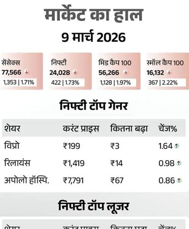 ईरान जंग से सेंसेक्स 1353 अंक और निफ्टी भी 422 अंक गिरकर बंद हुआ
