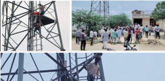5 साल के बेटे को लेकर मोबाइल टावर पर चढ़ा पिता