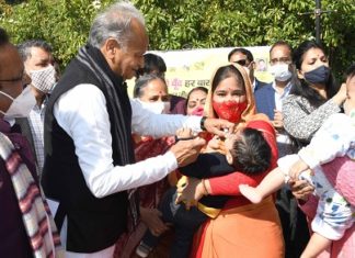 जयपुर। मुख्यमंत्री अशोक गहलोत ने रविवार को मुख्यमंत्री निवास पर बच्चों को पोलियो की दवा पिलाकर राष्ट्रीय पल्स पोलियो अभियान का प्रदेश में शुभारम्भ...