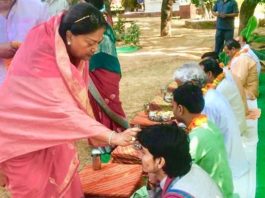 वसुंधरा राजे ने कन्या के पाँव धोये, ब्राह्मणाों के पाँव छूकर...
