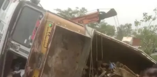 बेकाबू टैंकर पलटा, हाईवे पर भेड़ों की लाशें बिछीं