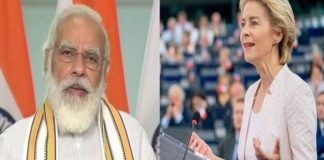 प्रधानमंत्री नरेन्द्र मोदी और यूरोपीय आयोग की अध्यक्ष महामहिम उर्सुला वॉन...