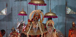 121 किलो पंचामृत से हुआ राधा-रानी का अभिषेक