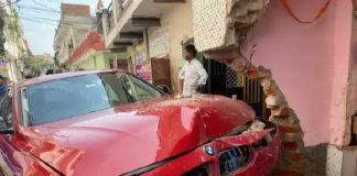 तेज रफ्तार बीएमडब्ल्यू ने तोड़ी मंदिर की दीवार