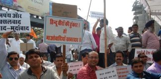 सीकर विवाद को लेकर विहिप व बजरंग दल का प्रदर्शन