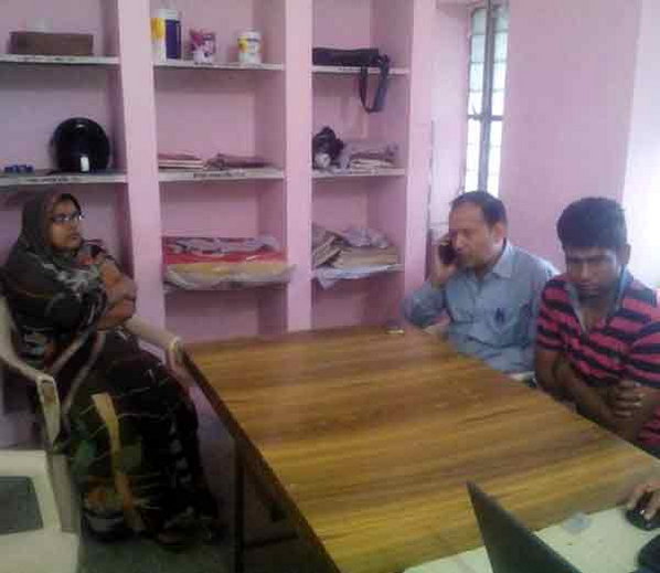 - -फोटो में चैयरमेन पिंकी साहू के सामने धारीदार टी-शर्ट में बैठा जितेन्द्र कुमार साहू। पास में सीआई नीरज गुप्ता।
