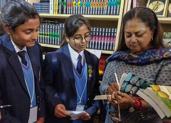 जयपुर। मुख्यमंत्री वसुन्धरा राजे सोमवार को अचानक एक आम लोगों की तरह जयपुर लिटरेचर फेस्टिवल में पहुंचीं। वे वहां बुक स्टॉल्स पर गईं और कई प्रख्यात लेखकों की किताबें देखीं। उन्होंने अपने लिए कुछ किताबें भी खरीदीं। राजे फेस्टिवल में एक आम प्रतिभागी की तरह पहुंचीं और साहित्य के महाकुम्भ में आम साहित्य प्रेमी की तरह शिरकत की। इस दौरान उन्होंने वहां बनाए हुए विभिन्न मण्डपों का अवलोकन किया। वे करीब एक घण्टे लिटरेचर फेस्टिवल में रहीं। इस दौरान उन्होंने लेखकों, महिलाओं एवं युवाओं से बातचीत की। उन्होंने यहां स्कूली बालिकाओं को किताबों पर आॅटोग्राफ भी दिए और कहा कि वे अपने साहित्य पढ़ने की रूचि को इसी तरह बनाए रखें। मुख्यमंत्री ने मीडिया से बातचीत करते हुए कहा कि यह लिटरेचर फेस्टिवल साहित्य को प्रोत्साहन देने की दृष्टि से महत्वपूर्ण मंच है। यहां आकर विभिन्न भाषाओं के उन प्रसिद्ध लेखकों से मिलने का मौका भी मिल जाता है जिन्हें हम उनकी साहित्य रचनाओं के माध्यम से ही जानते हैं। उन्होंने यहां बनाए गए माण्डणा चैक की प्रशंसा की। उन्होंने कहा कि माण्डणा आर्ट काबिले तारीफ है।