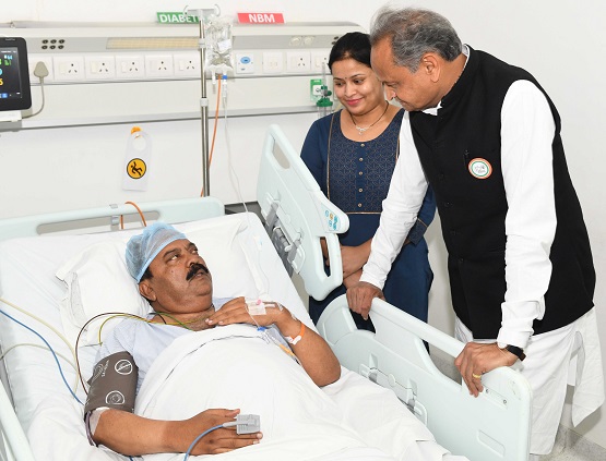 जयपुर। मुख्यमंत्री अशोक गहलोत गुरूवार को ईएचसीसी अस्पताल पहुंचे तथा वहां भर्ती जैसलमेर विधायक रूपाराम धनदेव की कुशलक्षेम पूछी। मुख्यमंत्री ने चिकित्सकों से उनके स्वास्थ्य की जानकारी भी ली।