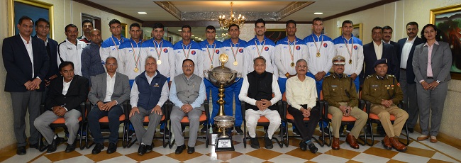 मुख्यमंत्री ने सभी खिलाड़ियों का उत्साहवर्धन किया और कहा कि उनकी इस उपलब्धि से प्रदेश के नवोदित खिलाड़ियों को आगे बढ़ने और प्रदेश का नाम रोशन करने की प्रेरणा मिलेगी। इस अवसर पर पुलिस महानिदेशक श्री कपिल गर्ग, अतिरिक्त मुख्य सचिव गृह श्री राजीव स्वरूप, अतिरिक्त मुख्य सचिव वित्त श्री निरंजन आर्य, अतिरिक्त पुलिस महानिदेशक कम्युनिटी पुलिसिंग श्री के. नरसिम्हा राव, एडीजी आरएसी श्री रवि प्रकाश मेहरड़ा भी उपस्थित थे।