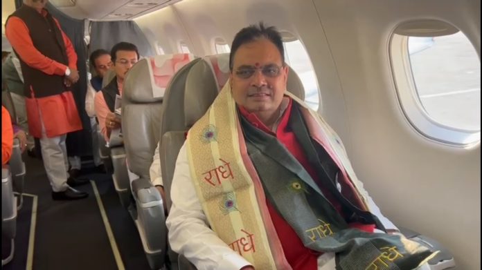 जयपुर। राजस्थान के मुख्यमंत्री भजनलाल शर्मा सोमवार को मंत्रिमंडल और विधायकों के साथ रामलला की प्राण प्रतिष्ठा के बाद पहली बार अयोध्या पहुंचे हैं। सोमवार सुबह सात बजे जयपुर से दो विशेष विमान में सभी लोग आयोध्या के लिए रवाना हुए। निर्धारित कार्यक्रम के अनुसार मुख्यमंत्री सुबह अयोध्या में दशरथ कुंड के पास धर्मशाला के भूमि पूजन कार्यक्रम में शामिल होंगे। मुख्यमंत्री के साथ भाजपा के पदाधिकारी भी मौजूद है। मुख्यमंत्री सुबह 11:30 बजे से दोपहर दो बजे तक प्रधानमंत्री मोदी की ओर से नेशनल हाईवे के प्रोजेक्ट्स के तहत राजस्थान में विभिन्न परियोजनाओं के शिलान्यास एवं लोकार्पण कार्यक्रम में वर्चुअल जुड़ेंगे। इसके बाद सभी का दोपहर 2:25 से 3:25 बजे तक भगवान रामलला मंदिर में दर्शन करने का कार्यक्रम है। अयोध्या दौरे का एक वीडियो भी शेयर किया गया है, इसमें मंत्री ‘रघुपति राघव राम’ भजन गाते हुए भी नजर आ रहे हैं। मुख्यमंत्री भजनलाल सबसे आगे की कुर्सी पर बैठे दिखे और उन्हें गले में ‘राधे-राधे’ लिखा गमछा भी डाल रखा है। अयोध्या रवाना होने से पहले मंत्री राज्यवर्धन सिंह राठौड़ ने पत्रकारों से बात की और कहा कि हमारा सौभाग्य है कि हमें अयोध्या जाने का मौका मिल रहा है। राठौड़ ने कहा कि इस देश की श्रद्धा, हमारे धर्म की रक्षा और देश की जनता के कारण रामलला का स्थान 550 साल बाद स्थापित हुआ है। सब वहां दर्शन के लिए जा रहे हैं। यह हमारा सौभाग्य है कि हमें दर्शन करने का अवसर मिला है। उनसे प्रार्थना करेंगे और आशीर्वाद लेंगे कि राजस्थान की एक-एक जनता को हम सक्षम बनाएं। राजस्थान का विकास शानदार तरीके से हो। पूरे देश का विकास हो और 2047 तक भारत विकसित राष्ट्र बन जाए। उल्लेखनीय है कि इससे पहले महाराष्ट्र, गोवा, असम, गुजरात, राजस्थान हरियाणा, उत्तर प्रदेश, अरुणाचल प्रदेश और उत्तराखंड कैबिनेट और मध्य प्रदेश की कैबिनेट का अयोध्या दौरा हो चुका है।