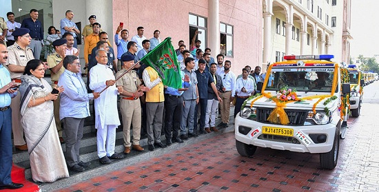 जयपुर। राज्य सरकार प्रदेश में कानून-व्यवस्था संधारण हेतु पुलिस के आधुनिकीकरण की दिशा में निरंतर कार्य कर रही है। इसी क्रम में मुख्यमंत्री अशोक गहलोत ने गुरुवार को मुख्यमंत्री आवास से 100 फर्स्ट रिस्पॉन्स व्हीकल (एफआरवी) को हरी झंडी दिखाकर रवाना किया। ये वाहन विभिन्न जिलों के पुलिस बेड़े में शामिल किए जायेंगें। इन सभी वाहनों को आधुनिक मोबाईल डाटा टर्मिनल (एमडीटी), कैमरा, एनवीआर, वायरलेस सेट, जीपीएस पब्लिक एड्रेस सिस्टम, फर्स्ट एड बॉक्स, स्ट्रेचर, हेलमेट एवं अन्य आपातकालीन उपकरणों से युक्त किया गया है। उक्त वाहन कमाण्ड कन्ट्रोल सेन्टर्स में ईआरएस डायल 112 से जुड़े रहेगें तथा इनकी वास्तविक लोकेशन को ट्रैक भी किया जा सकेगा। आमजन द्वारा आपातकालीन स्थिति में डायल 112 पर की गई सभी कॉल्स नजदीकी एफआरवी को भेजी जाएगी जिससे उन्हें त्वरित सहायता मिलेगी और अपराधों की बेहतर रोकथाम भी सुनिश्चित हो सकेगी। इस अवसर पर जन स्वास्थ्य एवं अभियांत्रिकी मंत्री महेश जोशी, पुलिस महानिदेशक उमेश मिश्रा, महानिदेशक (एससीआरबी) रवि प्रकाश मेहरड़ा एवं पुलिस महानिरीक्षक (एससीआरबी) शरत कविराज उपस्थित रहे।