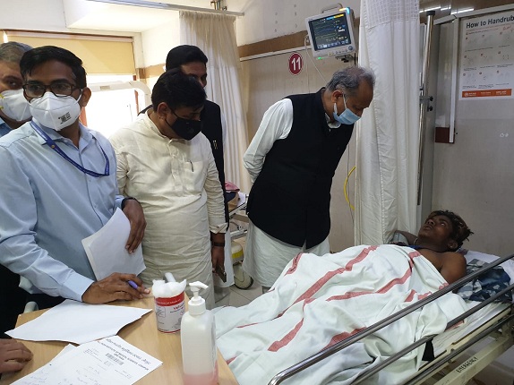 जयपुर। मुख्यमंत्री अशोक गहलोत मंगलवार को जोधपुर पहुंचे। गहलोत जोधपुर एयरपोर्ट से सीधे एम्स अस्पताल गए और वहां मंगलवार को ही एम्स रोड पर हुई सड़क दुर्घटना के घायलों तथा उनके परिजनों से मिले।