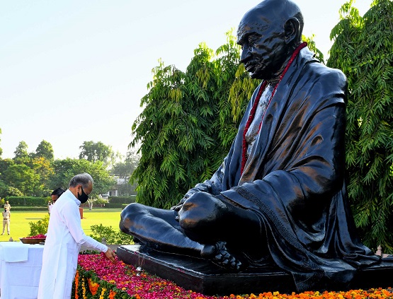 मुख्यमंत्री इसके बाद जवाहर लाल नेहरू मार्ग स्थित गांधी सर्किल पहुंचे और वहां महात्मा गांधी की प्रतिमा के समक्ष पुष्पांजलि अर्पित की। कला एवं संस्कृति मंत्री बी.डी. कल्ला, अल्पसंख्यक मामलात मंत्री शालेे मोहम्मद, सूचना एवं जनसम्पर्क राज्यमंत्री डॉ. सुभाष गर्ग ने भी इस मौके पर श्रद्धासुमन अर्पित कर राष्ट्रपिता को याद किया।