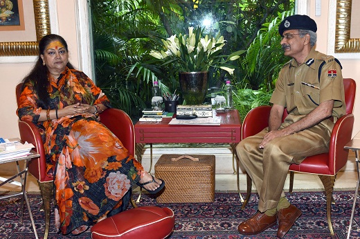 जयपुर. मुख्यमंत्री वसुन्धरा राजे से बुधवार को उनके राजकीय निवास पर नवनियुक्त पुलिस महानिदेशक अजीत सिंह शेखावत ने मुलाकात की। राजे ने इस नियुक्ति पर उनको बधाई दी। पुलिस महानिदेशक पद पर नियुक्ति के बाद सिंह की मुख्यमंत्री से यह शिष्टाचार भेंट थी।