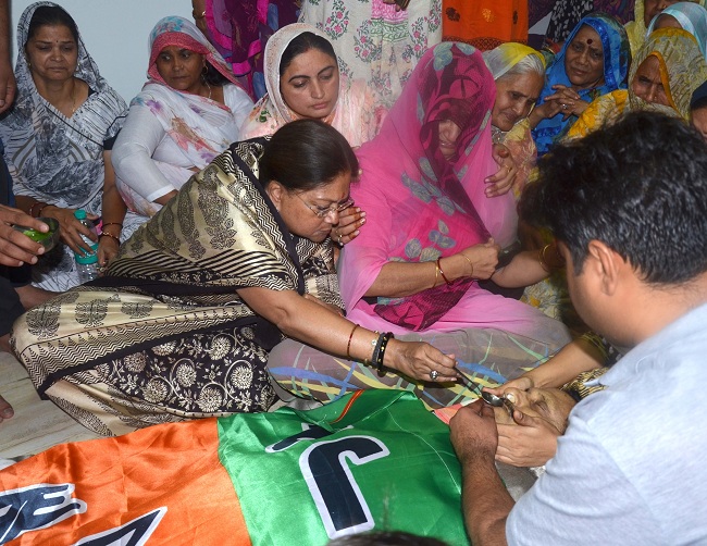 -मुख्यमंत्री वसुन्धरा राजे डाॅ. सिंह की अंत्येष्टि के लिए भरतपुर पहुंचीं दिगम्बर