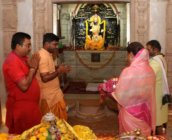 बांसवाड़ा। मुख्यमंत्री वसुन्धरा राजे ने गुरुवार को त्रिपुरा सुंदरी मंदिर में पूजा-अर्चना कर प्रदेशवासियों की सुख-समृद्धि की कामना की। बांसवाड़ा प्रवास के चैथे दिन मुख्यमंत्री ने त्रिपुरा सुंदरी परिसर में संत-महात्माओं का सम्मान कर उनसे आशीर्वाद लिया।