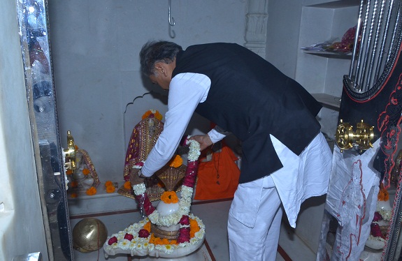जयपुर। मुख्यमंत्री अशोक गहलोत ने शनिवार को जालोर में जलंधरनाथ महादेव के दर्शन किये एवं प्रदेश मे खुशहाली की कामना की।गहलोत शनिवार शाम यहां पहुंचे एवं शहर के प्रमुख आस्था केन्द्र भैरूनाथ जी के अखाड़े पहुंचकर जलंधरनाथ महादेव के दर्शन किए और अखाडे़ के प्रमुख गादीपति गंगानाथ महाराज से आशीर्वाद प्राप्त किया। उन्होंने गोरखनाथ महाराज और भोलेनाथ महाराज की धूणी के दर्शन भी किये। अखाडे के महंत गंगानाथ महाराज ने मुख्यमंत्री का साफा पहनाकर एवं माल्यार्पण कर सम्मान किया।