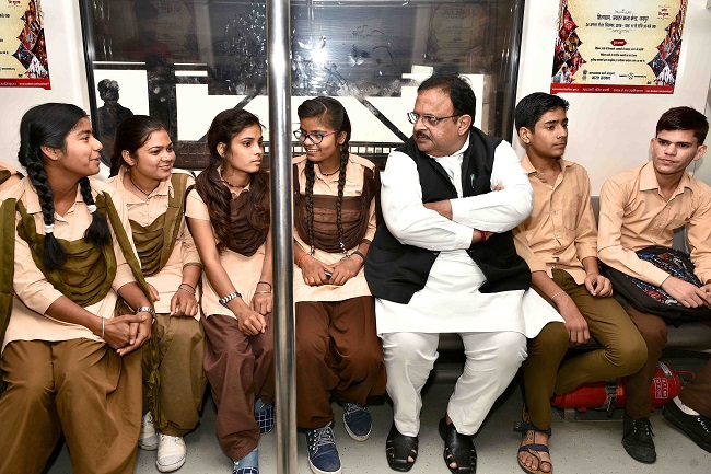 इस अवसर पर सूचना एवं जनसम्पर्क मंत्री डॉ. रघु शर्मा ने हीरापुरा स्थित कमला देवी राजकीय उच्च माध्यमिक विद्यालय जयपुर सहित अन्य विद्यालयों से आए 501 विद्यार्थियों के साथ जयपुर मेट्रो में सफर किया तथा सफर के दौरान चाचा नेहरू के जीवन की कई रोचक घटनाए बच्चों से साझा की। उन्होंने चाचा नेहरू के बच्चों से लगाव और बच्चों के द्वारा उन्हें चाचा नेहरू पुकारे जाने के रोचक किस्से भी सुनाए।
