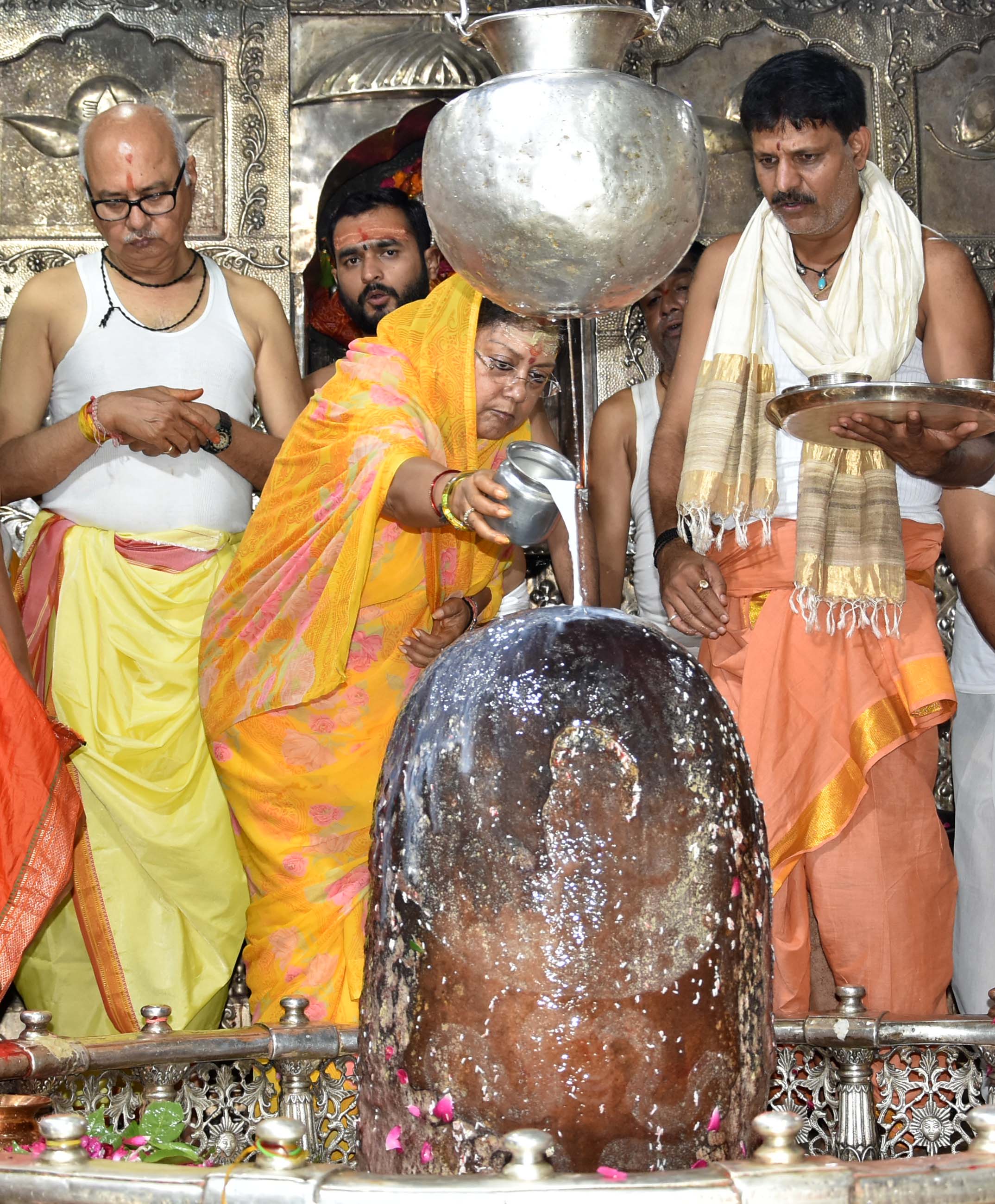 राजे ने उज्जैन पहुंचकर सर्वप्रथम अंगारेश्वर महादेव के दर्शन कर पूजा की। इसके बाद उन्होंने कालभैरव मंदिर तथा मां हरसिद्धि मंदिर में भी दर्शन कर पूजा-अर्चना की।