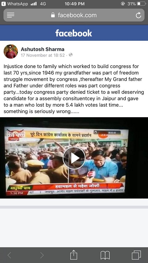 लेकिन जिस तरह आशुतोष शर्मा ने खुलेआम कांग्रेस पार्टी के खिलाफ जहर उगला है और कांग्रेस पार्टी से हिसाब मांगा है । उससे चर्चा गर्म है कि विधानसभा चुनाव के बाद यह मामला कांग्रेस के राष्ट्रीय अध्यक्ष राहुल गांधी तक पहुंचाया जाएगा । हालांकि इतना तय है कि आशुतोष शर्मा के गैर जिम्मेदारी युक्त रवैये ने कांग्रेस पार्टी में उनके परिवार के पुनर्वास के सभी रास्ते बंद कर दिए हैं और अपने पिता बृजकिशोर शर्मा का राजनीतिक वनवास सुनिश्चित कर दिया है । कांग्रेस में यह भी कहावत चल पड़ी है कि ‘ ड्रांईग रूम में बैठकर कांग्रेस को अपनी बपौती समझना ही एक बड़ी सियासी गलती इनसे साबित हुई। इसलिए इनका विरोध भी तिनके की तरह हवा में उड़ अपना वजूद नहीं दिखा पाया । ‘ जो भी हो, एक कद्दावर पुरोधा राजनेता की विरासत यूं मिटाने के लिए उनके वारिस जरूर याद किये जाएंगे ।