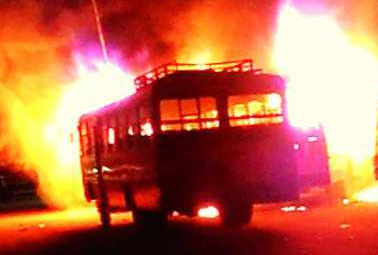 जयपुर। गैंगस्टर आनंदपाल की श्रद्दांजलि सभा से ठीक एक रात पहले कुचमान में कुछ उपद्रवियों ने बस स्टैंड पहुंचकर 6 बसों को आग के हवाले कर दिया । आग लगाने के बाद उपद्रवी मौके से फरार हो गए। बसों में आग लगने के बाद 6 में से दो बसों की आग पर काबू पा लिया गया तथा उन्हें जलने से बचा लिया गया। गौरतलब है कि 12 जुलाई को आनंदपाल एनकाउंटर मामले में आनंदपाल के परिजनों द्वारा की जा रही सीबीआई की मांग के मद्देनजर श्रद्धांजलि सभा का आयोजन किया गया था। पुलिस ने भी इस सभा के लिए सारी व्यवस्था चाक-चौबन्द कर रखी थी। जिसके बावजूद यह घटना गई। यह घटना घटने के बाद ना तो उन उपद्रवियों का पता लगा है और ना ही कोई कारण सामने आया है जिससे पता लग सके की उपद्रवियों ने बसों में आग क्यों लगाई। गनिमत यह रही कि इस स्थिति पर समय रहते काबू पा लिया गया नहीं तो माहौल बिगड़ सकता था तथा सरकार और पुलिस के लिए परेशानी का सबब बन सकती थी। पुलिस को चाहिए था कि अपने खुफिया तंत्र को एक्टिव मोड पर रखती तता अपनी व्यवस्था चौक-चौबन्द रखती।