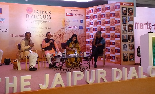 जयपुर। जयपुर डायलाॅग्स के तीसरे दिन “भारत की एकता एवं विभाजन के तत्व” विषय पर चर्चा हुई। वर्ल्ड ट्रेड पार्क में आयोजित तीन दिवसीय जयपुर डायलाॅग्स कार्यक्रम में आये मेहमानों व विद्वानों ने अपने विचार रखे। आज जयपुर डायलॉग्स कार्यक्रम के समापन सत्र में डॉ. सुब्रमण्यन स्वामी सांसद और राष्ट्रवादी कार्यकर्ता, तारेक फतेह लेखक, जे. नंदकुमार राष्ट्रीय संयोजक प्रज्ञा प्रवाह, शैफाली वेद्य सामाजिक मीडिया विशेषज्ञ, राघवन जगन्नाथन चीफ एडिटर स्वराज मैगजीन, “भारत की एकता एवं विभाजन के तत्व” विषय पर संवाद किया।