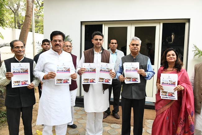 जयपुर। उपमुख्यमंत्री एवं ग्रामीण विकास एवं पंचायत राज मंत्री सचिन पायलट ने ग्रामीण विकास एवं पंचायती राज विभाग के मासिक सूचना पत्र राजस्थान का शुक्रवार को सिविल लाईन स्थित अपने निवास पर विमोचन किया।