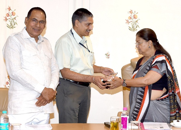 जयपुर। मुख्यमंत्री वसुन्धरा राजे को डिजिटल इंडिया समिट 2017 में ’डिजिटल लीडर आॅफ द ईयर’ अवार्ड से सम्मानित किया गया है। केन्द्रीय सूचना प्रौद्योगिकी मंत्री रविशंकर प्रसाद से दिल्ली में आयोजित समारोह में उद्योग मंत्री श्री राजपाल सिंह शेखावत ने ट्राॅफी ग्रहण की। मुख्यमंत्री राजे को प्रमुख शासन सचिव सूचना प्रौद्योगिकी अखिल अरोरा ने यह ट्राॅफी शनिवार को मुख्यमंत्री कार्यालय में भेंट की। डिजिटल इंडिया समिट के दौरान राजस्थान को तीन अन्य अवार्ड भी मिले। इसमें महिला सशक्तीकरण एवं वित्तीय समावेशन की भामाशाह योजना को ई-गवर्नेंस इनिशिएटिव आॅफ द ईयर अवार्ड, राजस्थान पुलिस के क्राइम कंट्रोल और डाटा एनालिसिस केन्द्र अभय कमाण्ड सेंटर को इफेक्टिव यूज आॅफ टेक्नोलाॅजी फोर सिक्योरिटी एण्ड सेफ्टी अवार्ड तथा भामाशाह स्वास्थ्य बीमा योजना को हैल्थ इंश्योरेंस इनिशिएटिव आॅफ द ईयर पुरस्कार मिला। तीनों पुरस्कार सूचना प्रौद्योगिकी एवं आयोजना विभाग के अधिकारियों ने प्राप्त किए।
