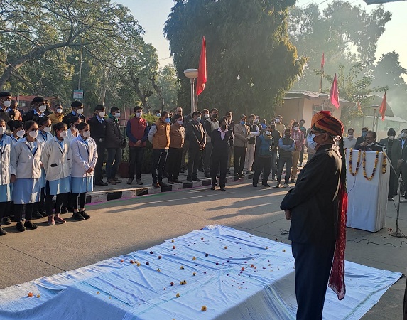 जयपुर, 26 जनवरी। 73वें गणतंत्र दिवस 26 जनवरी 2022 के अवसर पर स्वास्थ्य भवन, निदेशालय चिकित्सा एवं स्वास्थ्य, जयपुर में निदेशक चिकित्सा स्वास्थ्य डॉ.वीरेन्द्र कुमार माथुर ने ध्वजारोहण किया। इस अवसर पर निदेशक एड्स डॉ. रवि प्रकाश माथुर, निदेशक आरसीएच डॉ. के एल मीना सहित अन्य वरिष्ठ अधिकारीगण एवम कार्मिक समारोह में शामिल हुए।
